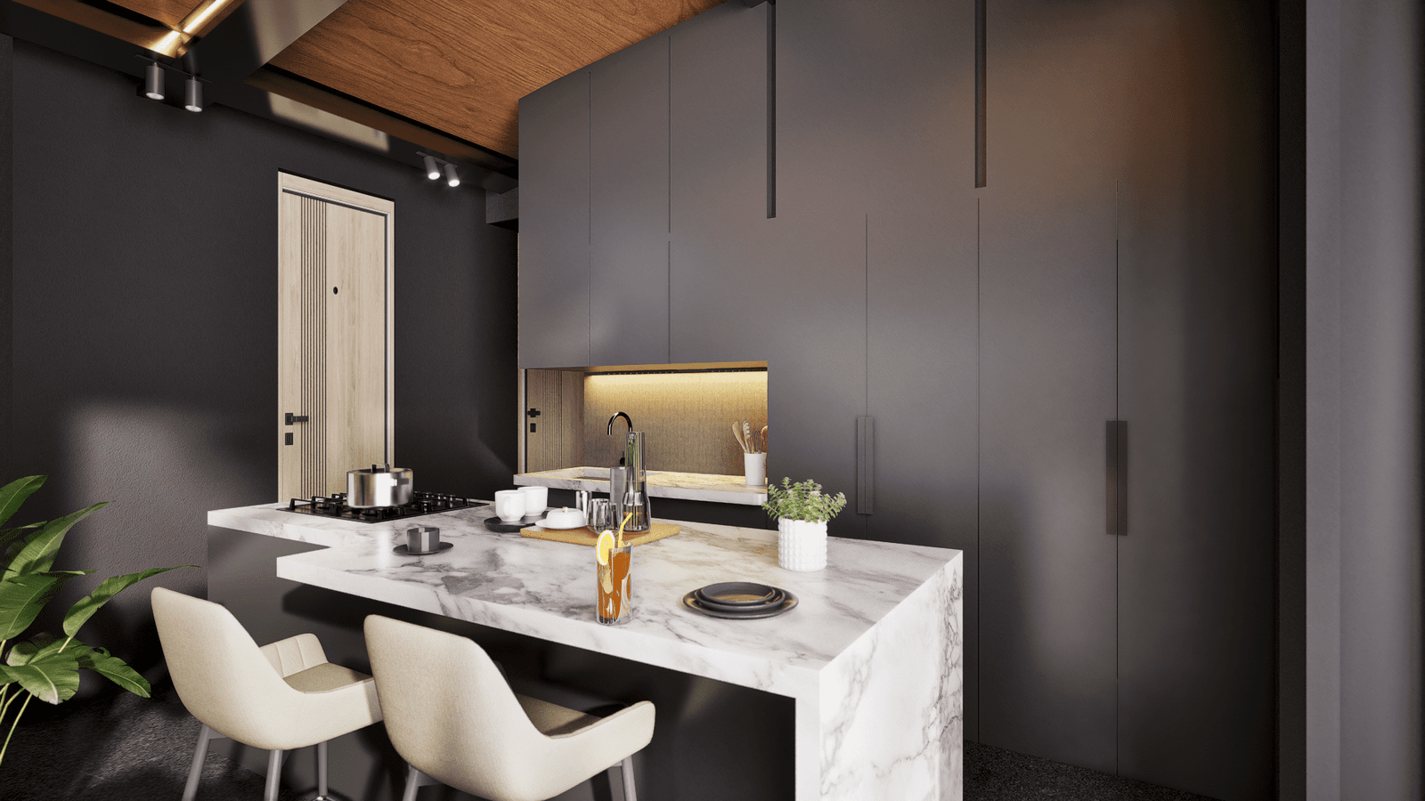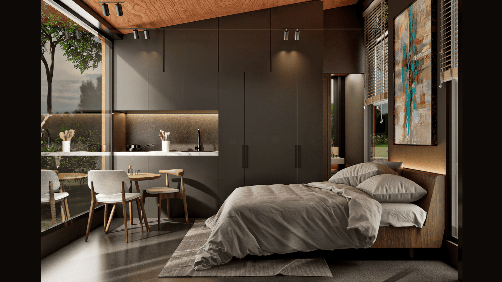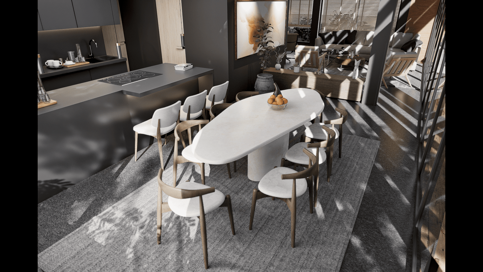 Ofrecemos propuestas interiores con muebles diseñados especialmente para optimizar cada espacio. Trabajamos materiales premium como madera natural, piedra, cuerdas y elementos de diseño artesanal que elevan la experiencia estética y funcional.
